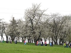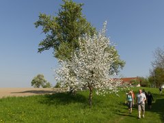 Besser als vorhergesagt war das Wetter bei der Kirschblütenwanderung am 21. April in Scharten. Trotz der kühlen Temperaturen kamen viele Wanderer in den Naturpark Obst-Hügel-Land.
