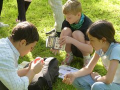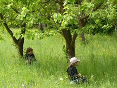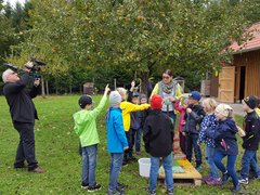 Die SchülerInnen der 2. Klasse der Naturpark-Volksschule Scharten setzen sich intensiv mit dem wichtigsten Lebensraum im Obst-Hügel-Land - der Streuobstwiese - auseinander.