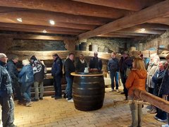 Zahlreiche Besucher:innen nutzen die Gelegenheit, bei der 1. Schartner Mostkeller-Roas am Samstag, den 8. November, die alten und modernen Mostkeller im Obst-Hügel-Land zu erkunden.