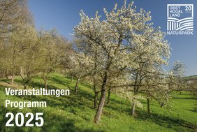 In der Programmbroschüre sind nicht nur alle Termine, sondern auch Infos zu Einkehr- und Einkaufsmöglichkeiten im Obst-Hügel-Land, zu den Ausflugszielen, Gruppen- und Schulangeboten im Naturpark sowie zu unseren Naturvermittler:innen enthalten.