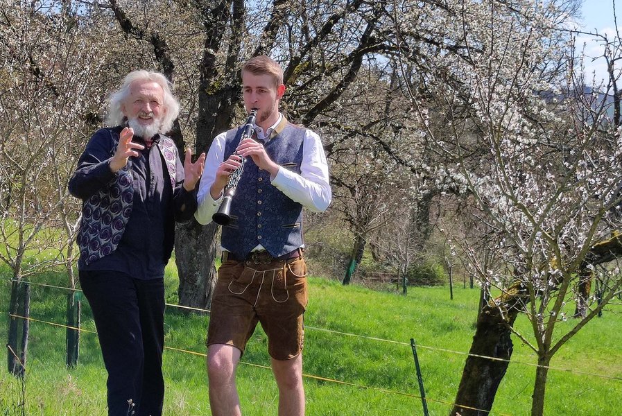 Musikalisch*Literarischer Spaziergang in den Schartner Blütenmeeren mit WETTERHANS GESSL und seinen musikalischen Begleitern JONAS ROHRER (Klarinette, Trompete) und MARVIN EDLER (Harmonika) - beides vielseitige Musiker aus Scharten. Unter dem Motto "Gehn, Stehn , Hörn, Schaun, Tanzln, Gstanzln" geht erstmalig "KERSCHKULTUR to go" über die Schartner Blüh-Bühnen.
