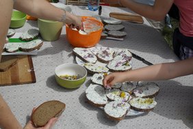 Unsere Tour führt uns in traditionelle Obstgärten mit alten Sorten wie der „Schartner Rainkirsche“ oder dem „Weberbartl-Apfel“. Hier verstehen wir, wie viel Arbeit die Pflege von alten Obstbaumbeständen für die Bauern bedeutet und welchen hohen ökologischen Wert Streuobstwiesen in sich bergen (bis zu 5.000 Tier- und Pflanzenarten). Wir lernen Wildkräuter der Streuobstwiese kennen, sammeln diese und verarbeiten sie zu gesunden und schmackhaften Köstlichkeiten, wie Kräuterpralinen, (veganen) Aufstrichen u.v.m.