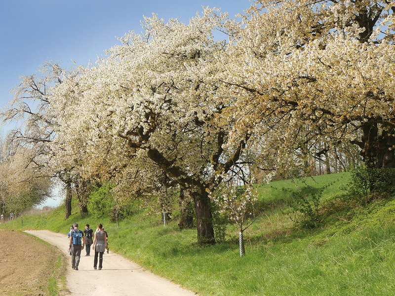 Zur Zeit der Kirschblüte ist die Region um Scharten landschaftlich besonders attraktiv, die sanfthügelige Landschaft mit den vielen Obstbäumen und die kulinarischen Angebote der Schartner Höfe und Betriebe laden zum Wandern und Genießen ein.