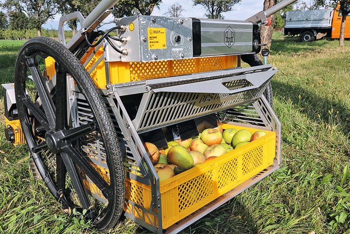 Die Nutzung des Streuobsts ist ein wichtiges Ziel im Naturpark Obst-Hügel-Land. Um die Ernte zu erleichtern, wurde eine Obstraupe als Gemeinschaftsgerät angeschafft. Obstgartenbesitzer in den Naturparkgemeinden Scharten und St. Marienkirchen/Polsenz können dieses Erntegerät und auch einen dazu passenden Sortiertisch ausleihen. Die Obstraupe Silver Fox 02 ist ein akkubetriebenes Obstsammelgerät für den Einsatz in vielfältigen Streuobstgärten. Sie ermöglicht ein rückenschonendes Aufsammeln von Äpfeln und Birnen, aber auch Nüssen oder Zwetschken.