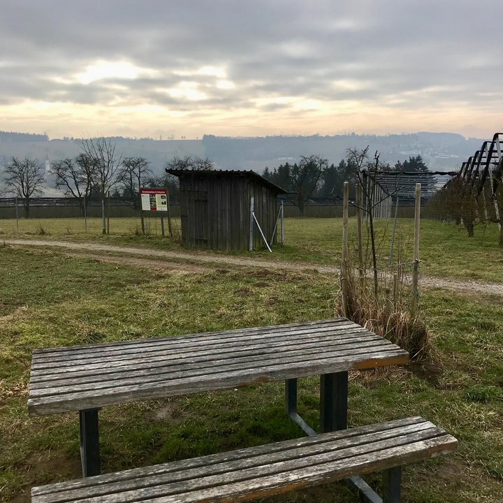 Ein wundervoller Blick von oben auf Scharten und seine weitläufigen Siedlungsgebiete. Mit im Bild: zwei Kirchtürme als sichtbares Zeichen für ein vormals Nebeneinander, dann zunehmendes Miteinander der Religionen. Erst der Frieden im Innen gibt Kraft nach außen. Weil das nicht immer so war, ist es heute um so wertvoller: Speichern wir das friedliche Ortsbild als Symbol für nachhaltig funktionierende, starke Gemeinden.