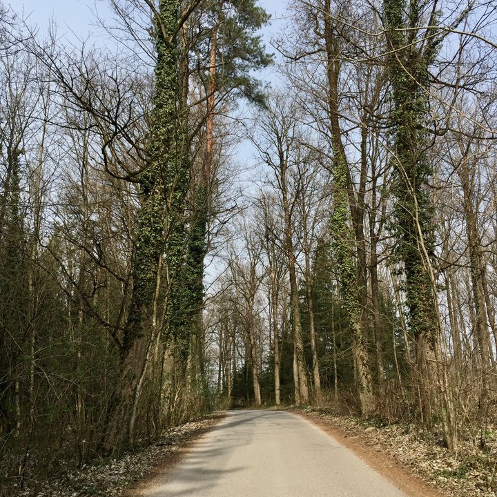 Ab einem gewissen Punkt bilden die hohen Bäume zu beiden Seiten der Straße durch den Wald eine Art Säulenhalle, durch die wir hindurchschreiten. Im oberen Bereich ihrer Wipfel reichen sich die Bäume die Äste wie Hände. Es ist ein Symbol für Partnerschaften: