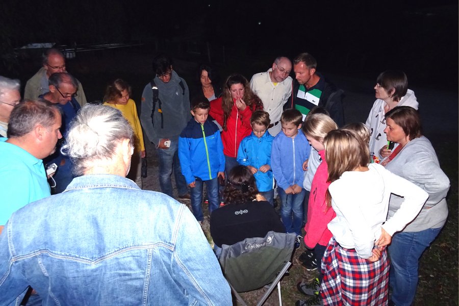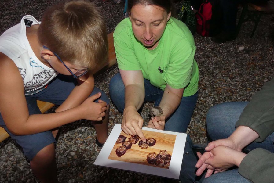Bei den vier Fangaktionen 2022 konnten 28 Individuen (9 verschiedene Arten) bestimmt werden, darunter auch eine Bechsteinfledermaus in Unterscharten. Dieses Weibchen wurde besendert. Drei Tage lang konnte es mittels Telemetrie verfolgt werden, bevor es vermutlich den Sender verlor. Bei einem der beiden dokumentierten Tagesquartiere (Höhle einer alten Weide) konnten in der abendlichen Dämmerung 31 Bechsteinfledermäuse gezählt werden. Mittels akustischer Erhebungen wiesen die Expertinnen mindestens neun Arten nach, darunter auch die Bechsteinfledermaus, aber nur am Standort Unterscharten.