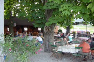 Großer, sehr schöner und durch Kastanienbäume schattiger Gastgarten für 120 Personen.